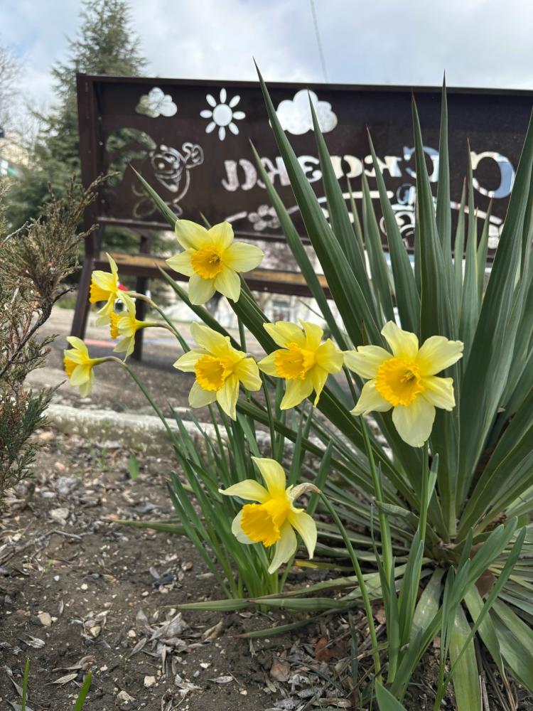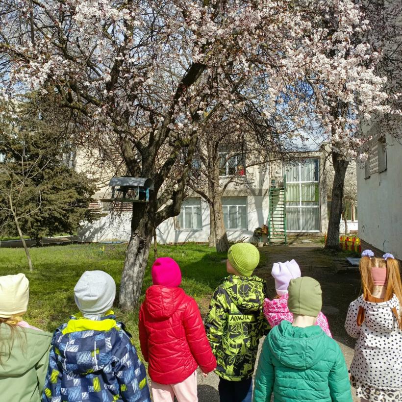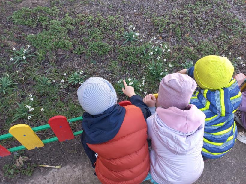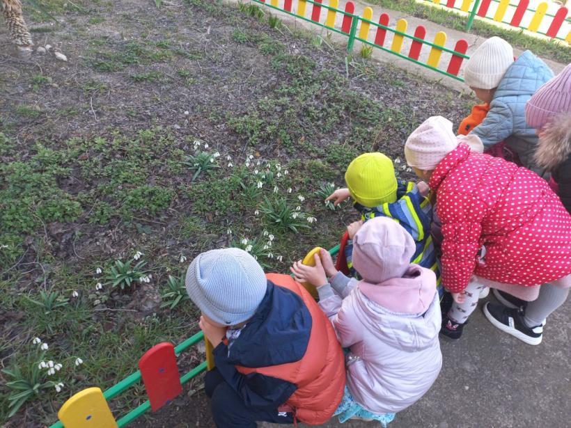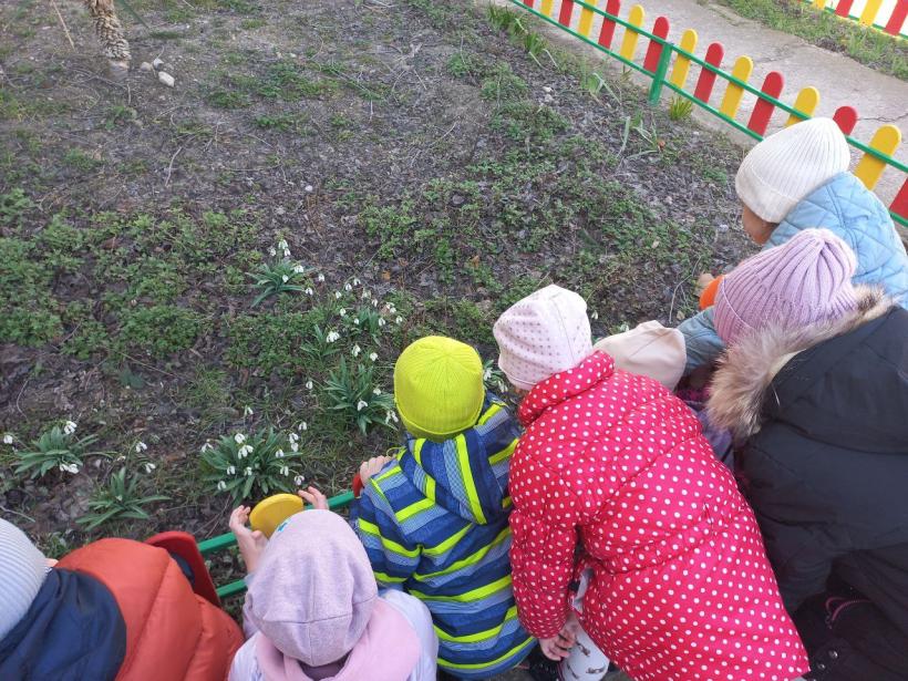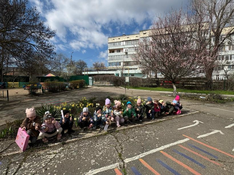Каждый день воспитанники нашего детского сада отправляются на прогулки-наблюдение по участку: они любуются весенними цветами и отмечают, как с каждым днём преображается территория.