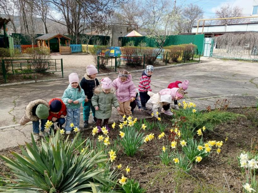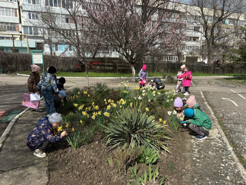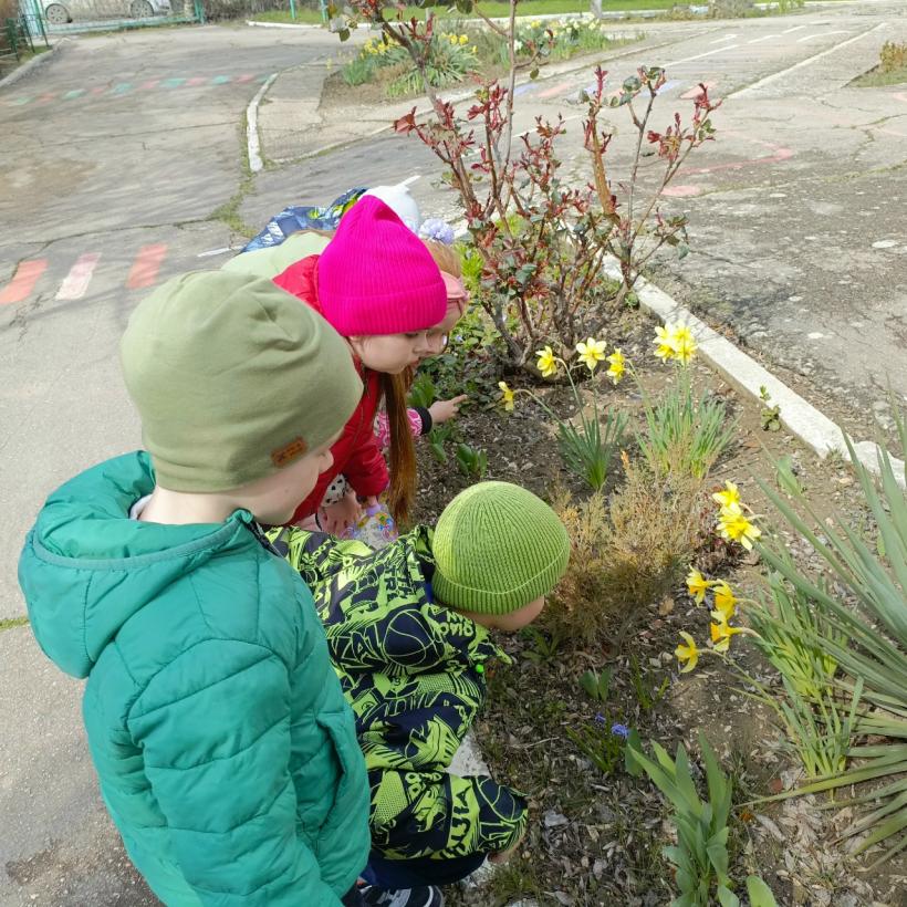 Ребята рассматривают форму и окраску бутонов, учатся аккуратно подходить к клумбам, вспоминают, почему нельзя рвать растения и как за ними ухаживают. Разговаривают о том, какие изменения приносит весна и что нужно растению для роста. Такие наблюдения помогают развивать внимательность, расширяют словарный запас и формируют бережное отношение к природе.