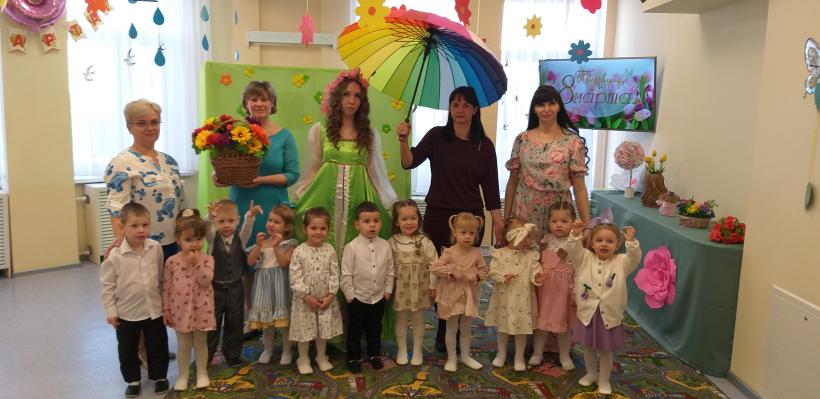 Сегодня самые маленькие воспитанники детского сада из группы «Карамельки» и «Колокольчик» встречали праздник 8 Марта вместе с Весной. Малыши посмотрели кукольный спектакль «Как ёжик поздравлял маму с праздником», пели для мамы песни, играли, танцевали с цветочками, собирали букет для мам, что доставило массу удовольствия ребятишкам. Праздник, несомненно, привнёс в жизнь детского сада атмосферу весенней радости и счастья.