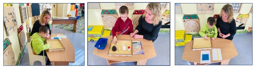 Игровое развивающее пособие «Сенсорный поднос» облегчает процесс усвоения и последующей актуализации изучаемых на логопедических занятиях лексико-грамматических понятий, способствует развитию связной речи. Основой служит сенсорный материал, имеющий символическое значение. Например, манка, вата может символизировать снег, фольга - лед, рис, окрашенный в желто-оранжевый цвет – осенняя трава или опавшие листья. В процессе работы с сенсорным подносом дети овладевают коммуникативными навыками, активизируют познавательные процессы, развивают воображение, придумывая свои собственные игровые сюжеты.