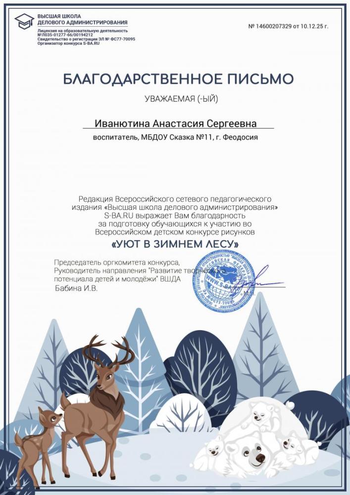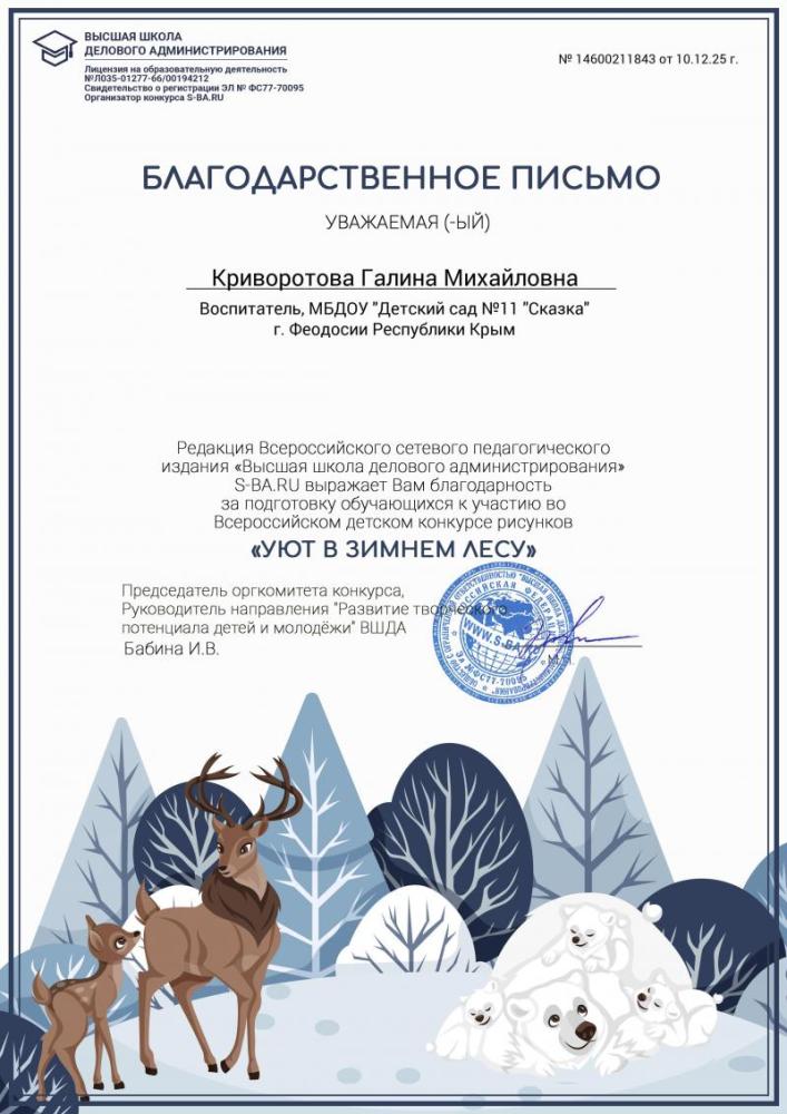 Поздравляем победителей Всероссийского детского конкурса рисунков "Уют в зимнем лесу"