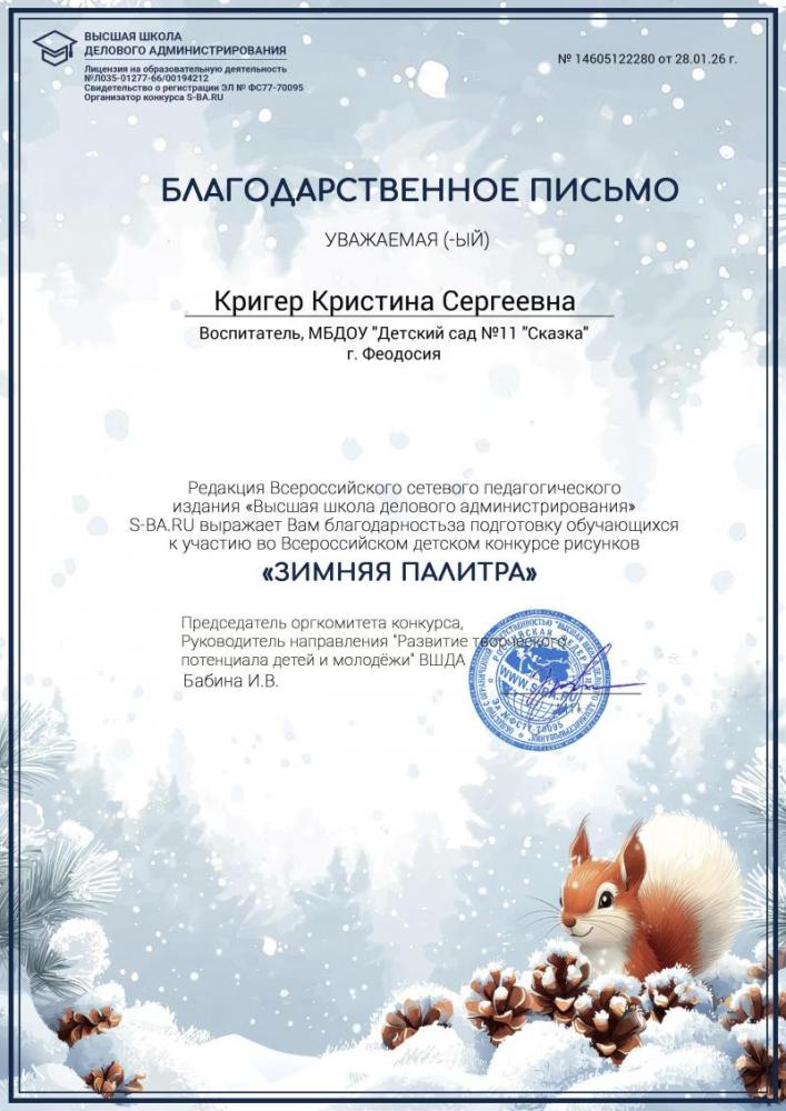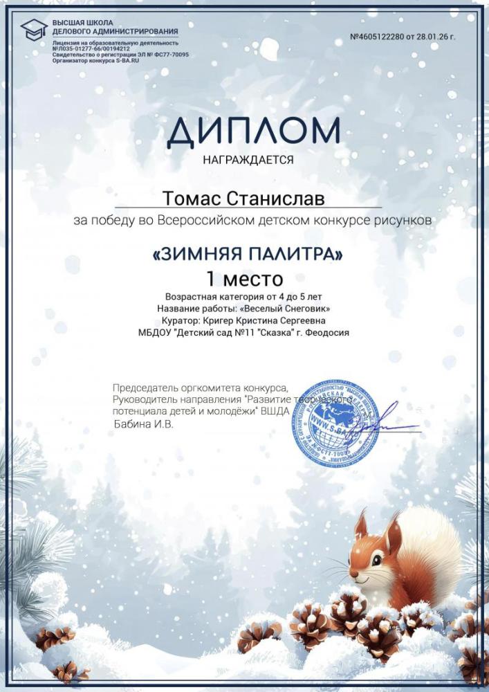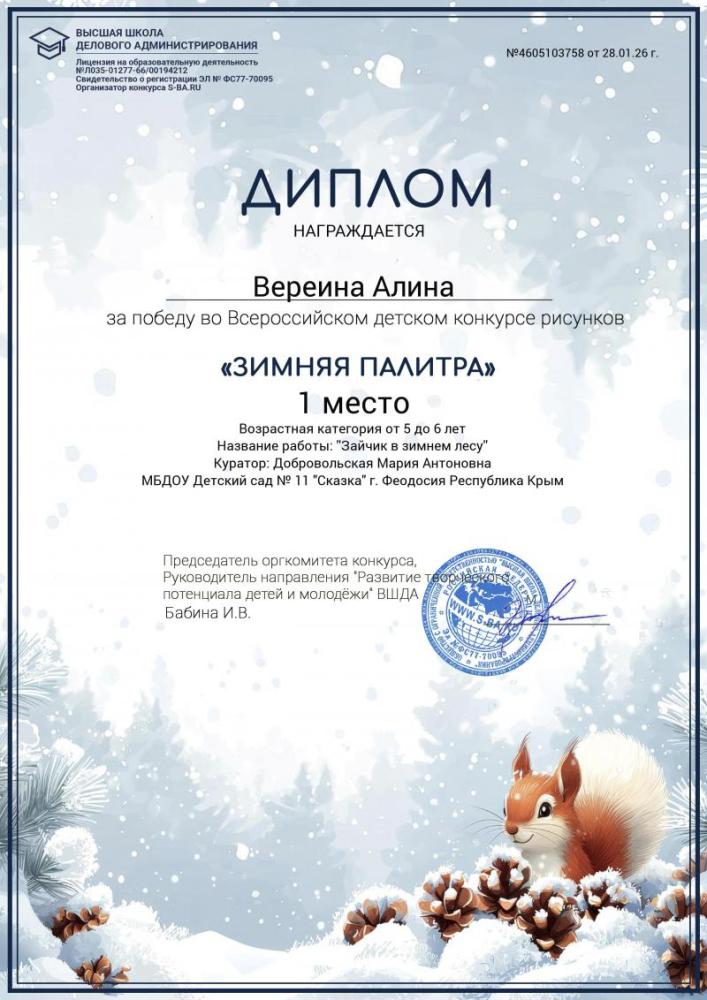 Поздравляем победителей Всероссийского детского конкурса рисунков "Зимняя палитра"