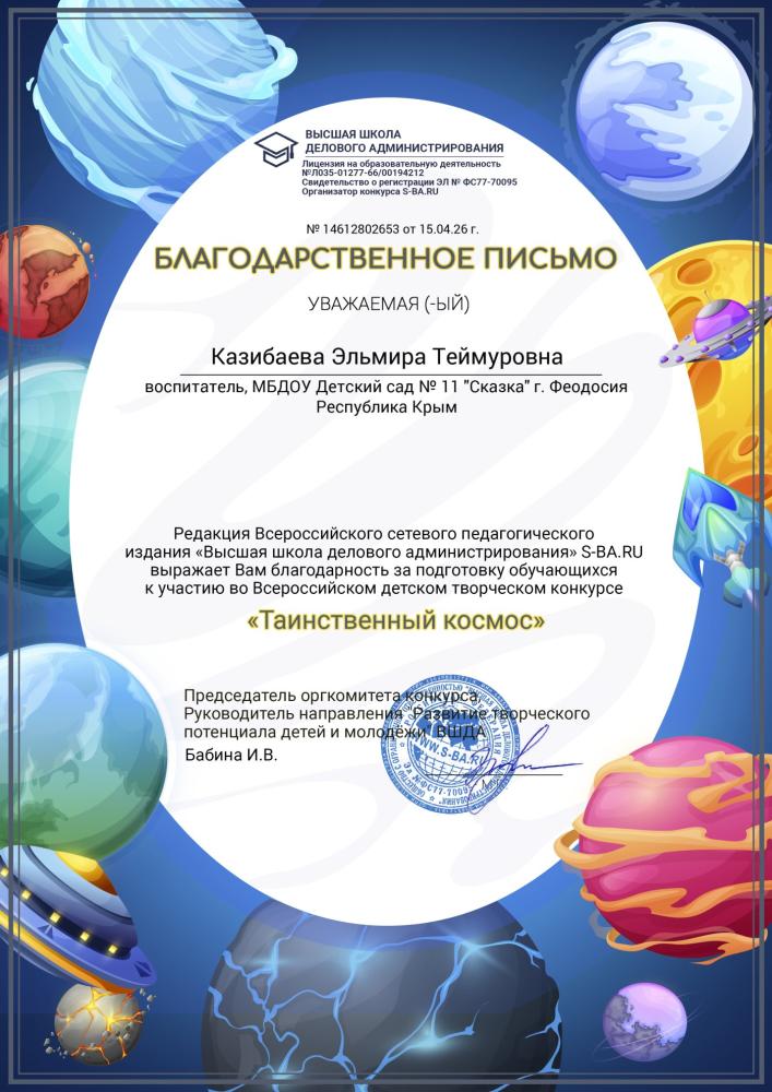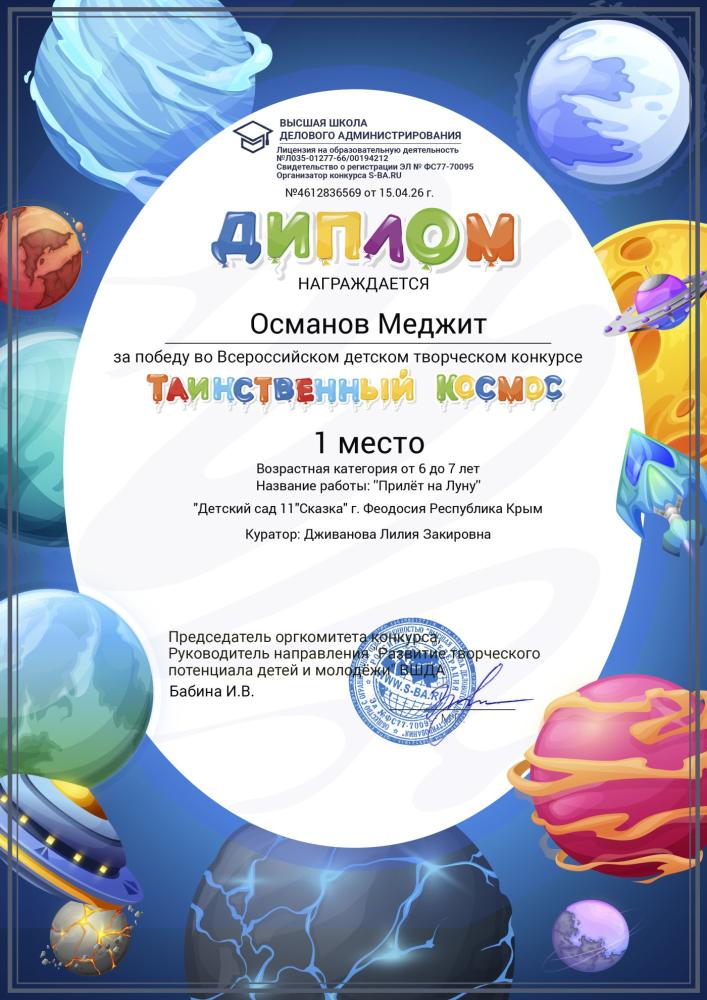 Поздравляем победителей Всероссийского детского творческого конкурса "Таинственный космос"