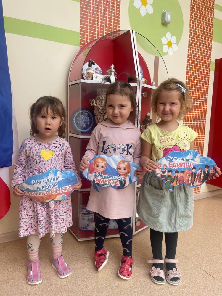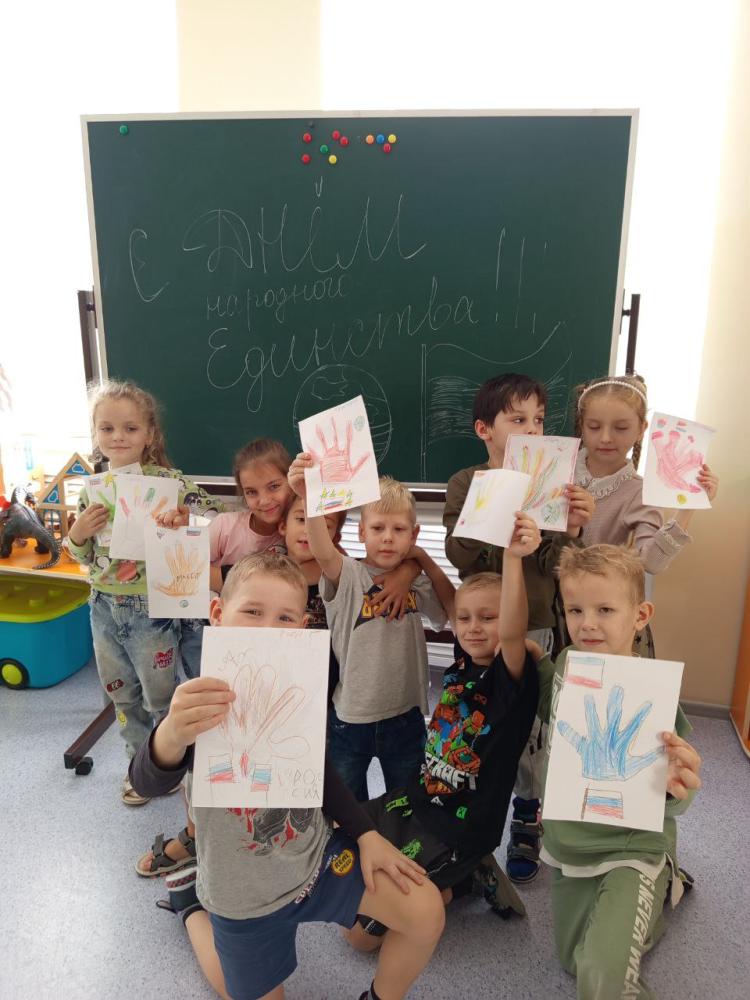 День народного единства празднуется 4 ноября. Это прекрасный повод вспомнить о подвигах прошлого, поблагодарить за настоящее и поставить светлые цели в будущем. Накануне праздника в нашем детском саду проходили мероприятия, посвященные этой дате. В ходе мероприятий дети в доступной форме познакомились с историей возникновения праздника, подвигами наших предков во имя независимости Родины. Ребята вспомнили о том, как велика и красива наша Родина, как богата событиями её история, закрепили свои знания о государственных символах.
