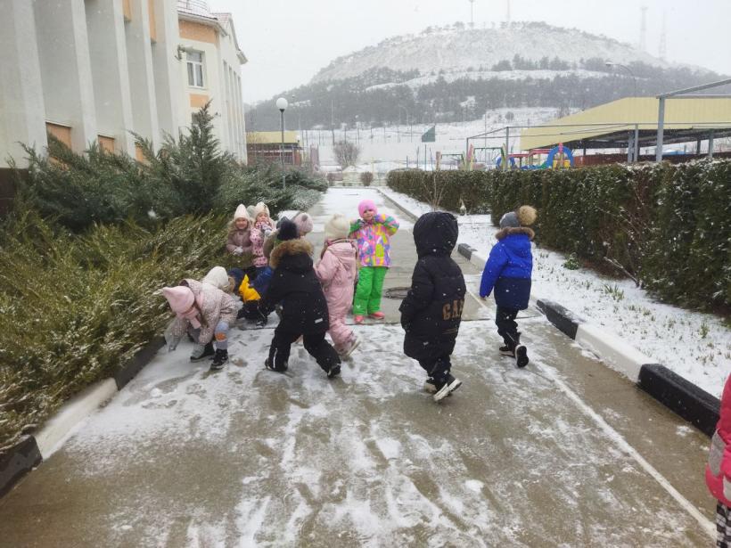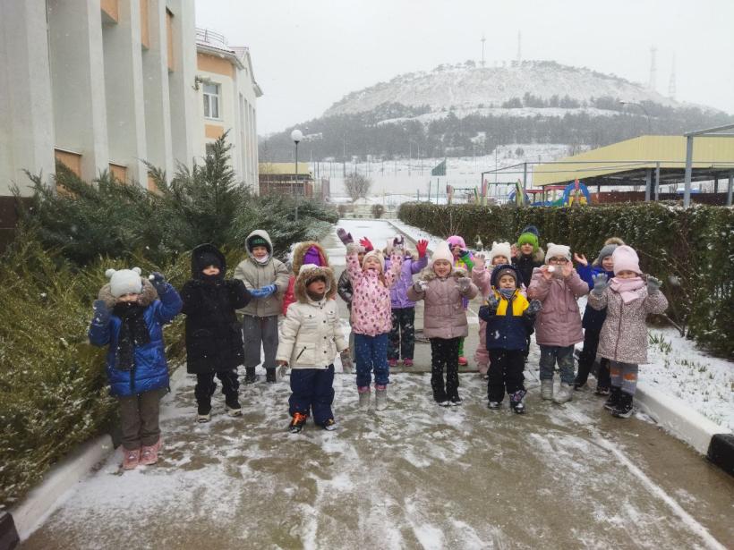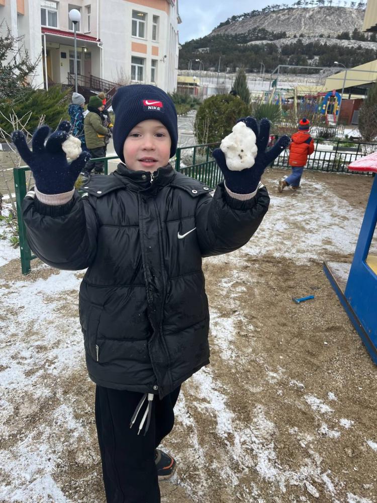 Природа в Крыму иногда приносит нам свои сюрпризы. Наконец то выпал снег. Для детей – это и вовсе маленькое чудо. Воспитанники нашего детского сада с нетерпением ждали прогулку, они смотрели в окна и не могли дождаться. Ведь так хочется потрогать руками снег, поймать в ладошки снежинку, и конечно поиграть в игры со снегом. Радости не было предела, дети полюбовались снежным убранством горы Лысая и сразу бросились играть в снежки, лепить снеговиков. Дети получили кучу положительных эмоций от совместной деятельности, и остались довольны.