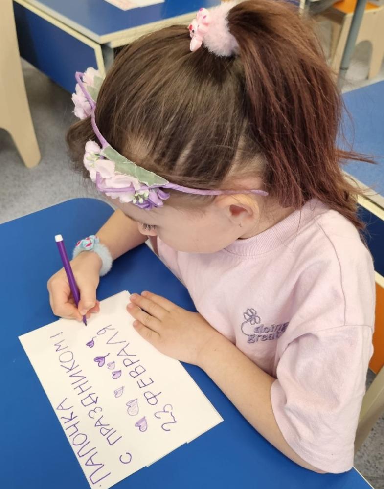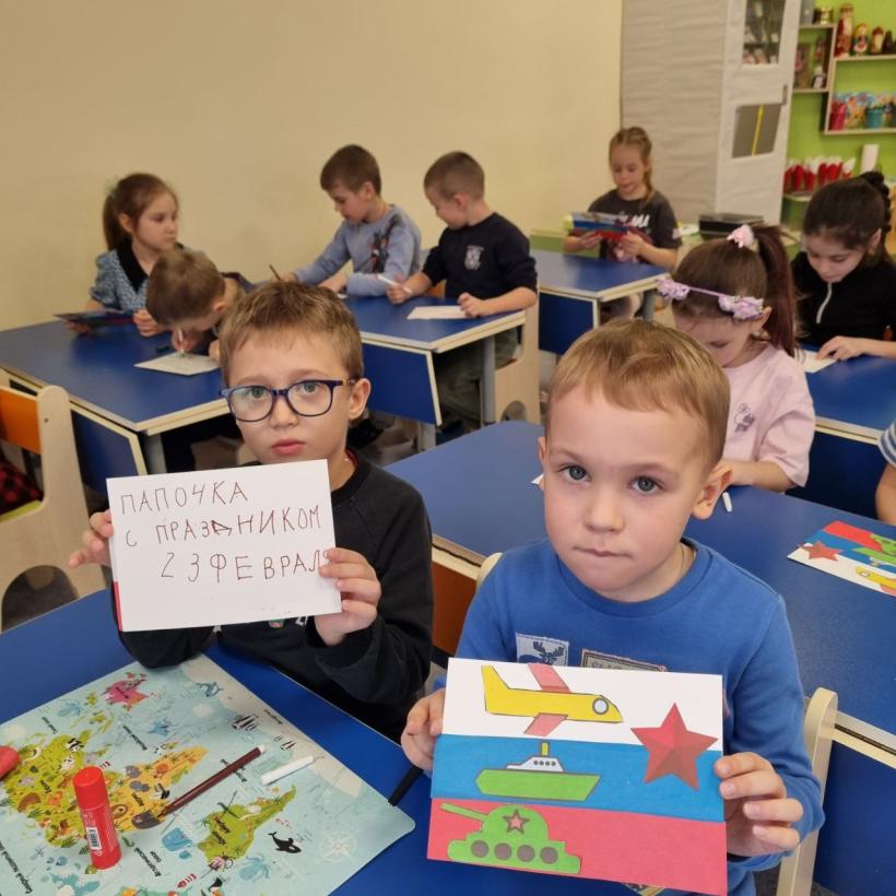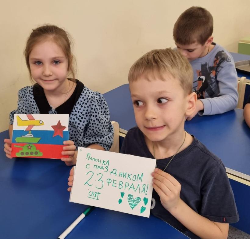 В преддверии праздника "Дня защитника Отечества" дети подготовительной группы «Землянички» приготовили открытки для своих пап. Открытка, сделанная своими руками – замечательный подарок, ведь она хранит в себе частичку души и капельку любви ребенка. Ребята с особым трепетом писали в открытках слова поздравления для своих любимых пап. Получились замечательные подарки, которые дети подарили своим папам и дедушкам. В раздевалке группы была оформлена праздничная газета «У каждого свой герой». Не забыли и о мальчишках, девочки поздравили их с праздником и пожелали им быть смелыми и сильными!