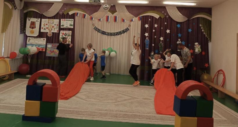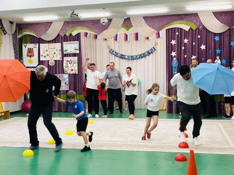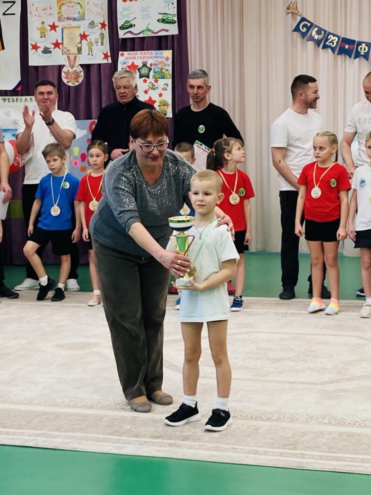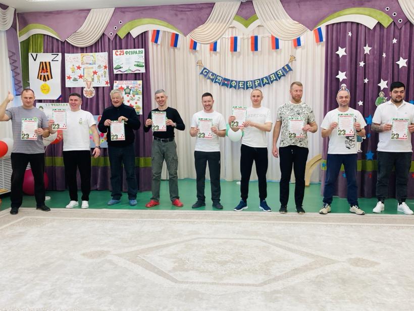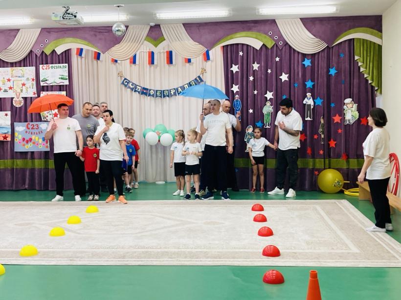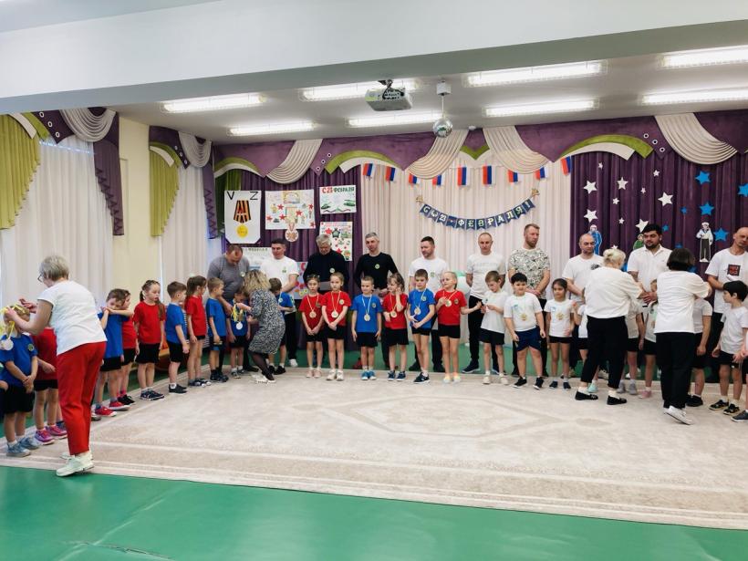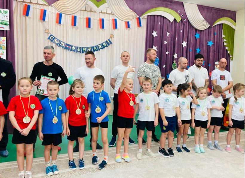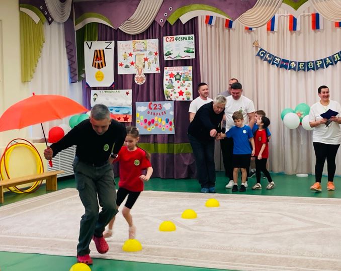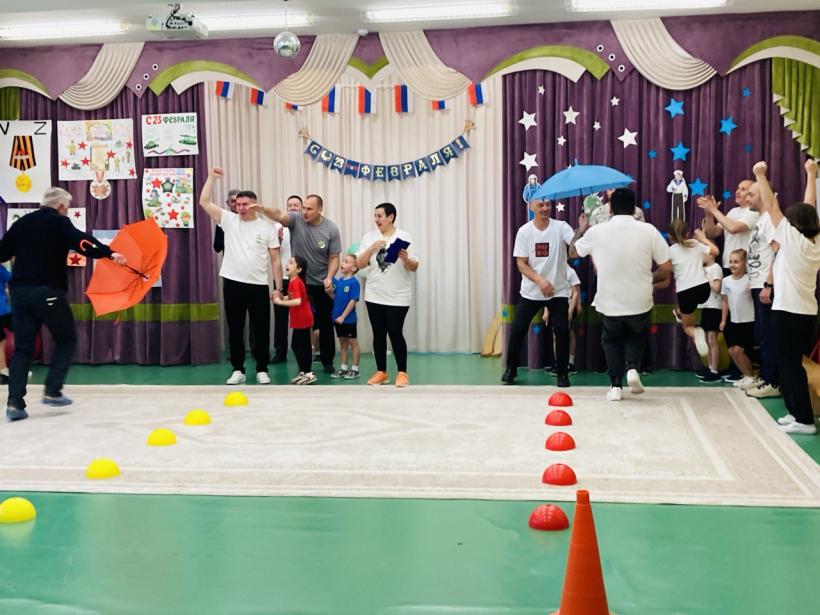 По многолетней традиции День Защитника Отечества в нашем детском саду отмечается совместным музыкально-спортивным праздником для детей и родителей. Так 20 февраля 2026 года состоялись соревнования в которых принимали участие дети и родители подготовительных групп «Землянички» и «Семицветик». Дети и взрослые разделились на две команды: «Танкисты» и «Пограничники», представили девизы команд и начались соревнования. Спортивный задор и желание добиться победы для своей команды захватывали детей настолько, что они не замечали происходящего вокруг. Все старались изо всех сил быть первыми. Все участники проявили большую активность, подарили друг другу хорошее настроение, показали какие они ловкие, выносливые и смелые. Испытания были необычные, но каждый папа старался проявить себя и выполнить задания, как можно лучше. Было радостно видеть, как дети эмоционально поддерживали своих пап и бурно реагировали на их успехи. В конце праздника команды получили заслуженные медали, дипломы и кубки за старательность, проявленную смелость и стойкость перед трудностями, а взрослые участники соревнований были награждены благодарностями. Такие мероприятия закладывают в душах наших детей зёрнышки патриотизма, чувства долга перед Родиной. Это ещё один повод для формирования у ребят гордости за наших защитников Отечества! Большое спасибо папам и дедушкам за активное участие в соревнованиях, жизни групп и детского сада. Поздравляем Вас с Днём защитника Отечества, желаем крепкого здоровья, долголетия, счастья и удачи!