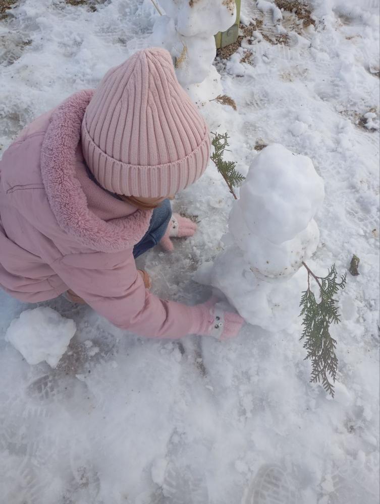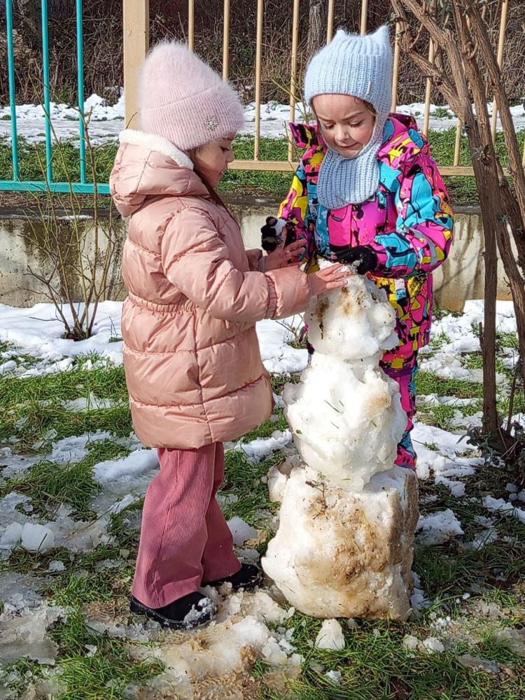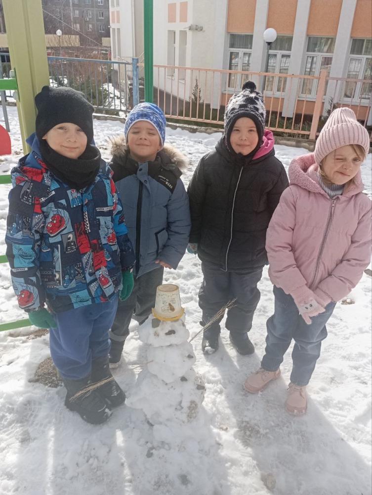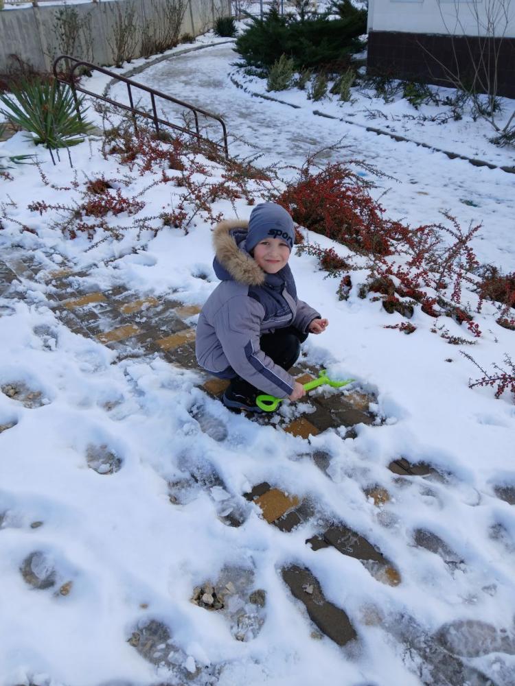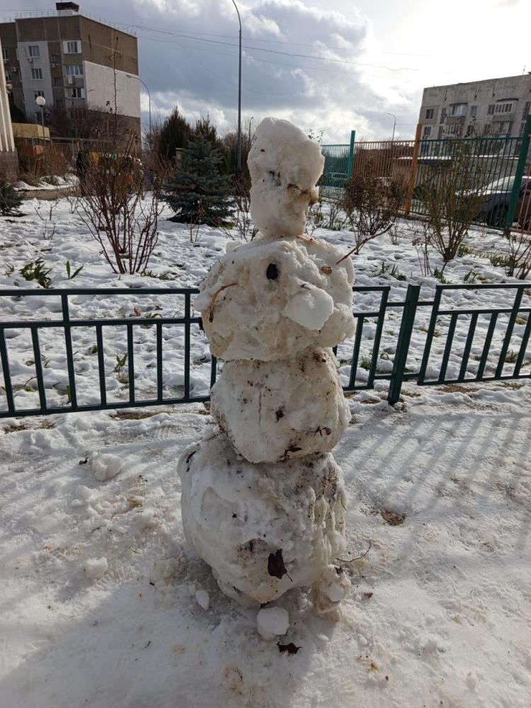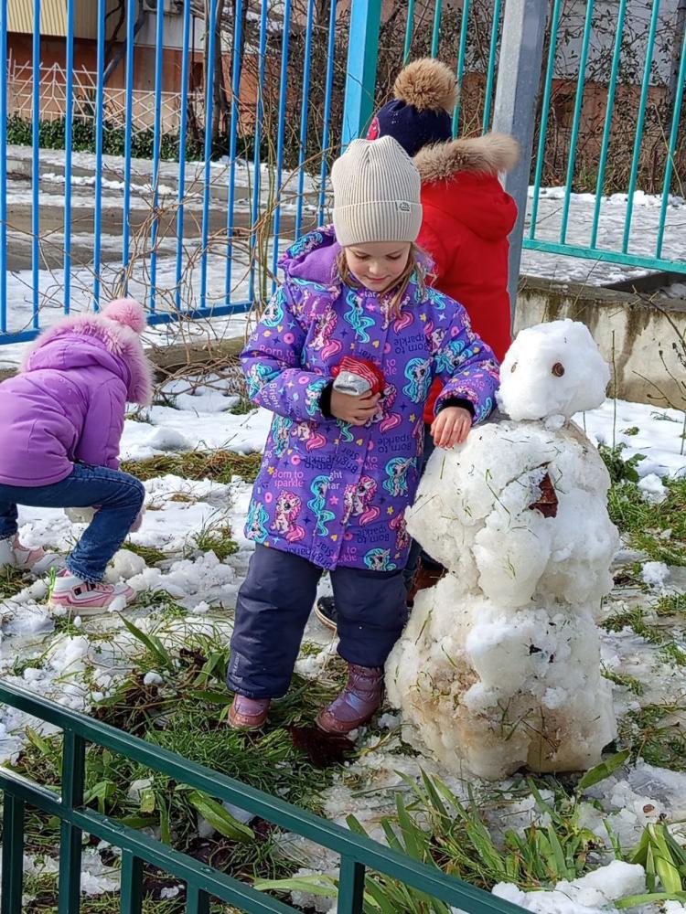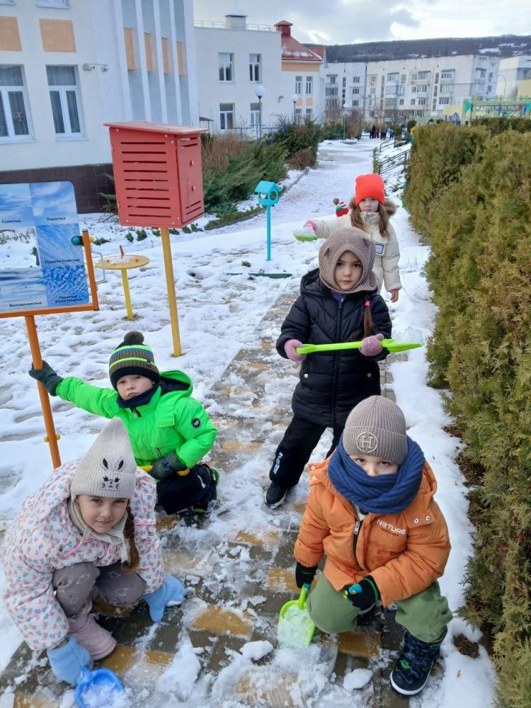 Зима в Крыму преподносит сюрпризы. Снег в конце недели стал таять, но мокрый снег – это хороший строительный материал. Ребята с удовольствием лепили снеговиков и расчищали дорожки. Отличное настроение- результат прогулки . Дети получили  заряд бодрости и хорошего настроения.