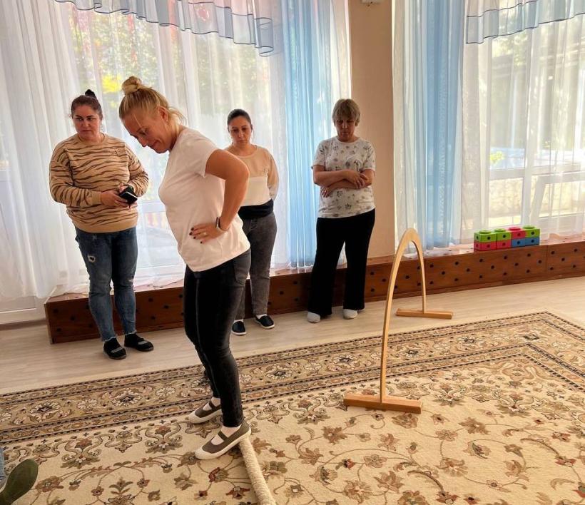 Продолжаются занятия семинара-практикума по обучению воспитателей основным видам движений и методике проведения занятия по физкультуре.