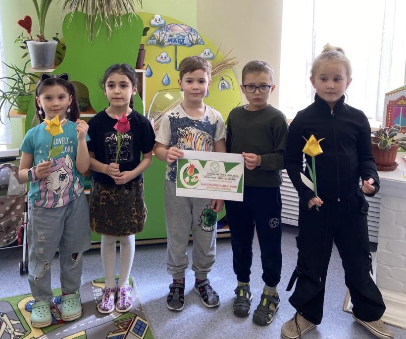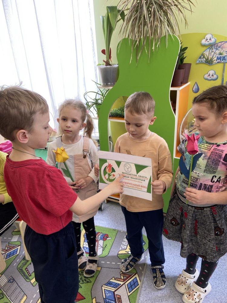 В рамках благотворительной акции в нашем детском саду воспитатели с детьмисимвол акции – тюльпан (поделка из бумаги), провели беседы «Добрые поступки», «Что такое доброта, милосердие и взаимовыручка». Доброта, милосердие, взаимовыручка – эти слова самые главные для человека. Доброта – это то, что делает нашу жизнь теплее и душевнее. Доброта помогает нам понимать, что мы – люди, и мы должны помогать друг другу, делать добро – тогда жизнь станет чуточку лучше. Надеемся, что эти понятия станут социальной и моральной нормой жизни наших детей.