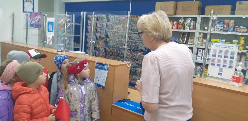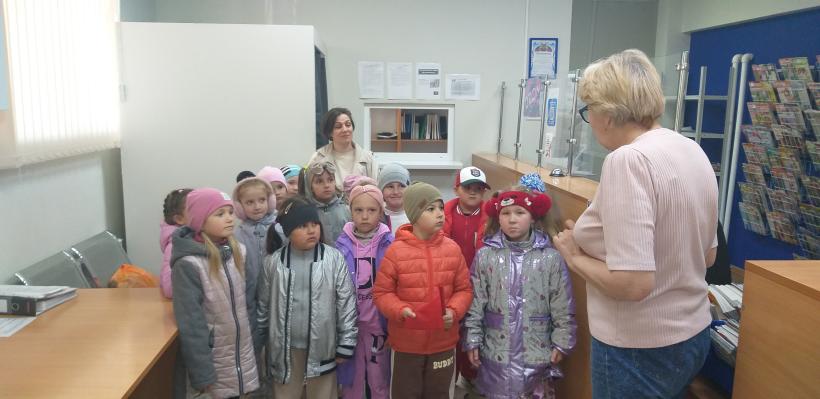 Ребята из группы «Семицветик» побывали на почте. Ребят встретила и провела экскурсию начальник почтового отделения связи. Она подробно рассказала о том, какие услуги оказывает  жителям города работники почты. Дети узнали о работе почтальона,  познакомились с разными способами почтовой корреспонденции. Сотрудники почты показали специальные помещения на почте, где хранятся письма, посылки, увидели как работает транспортёр. Дети и педагоги поблагодарили  работников почты за интересную и познавательную экскурсию.