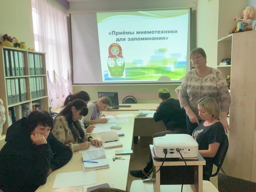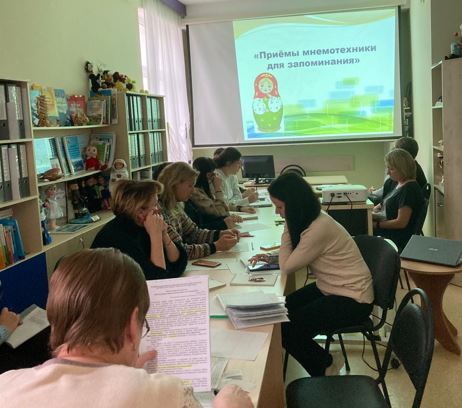 В рамках выполнения задач годового плана, повышения профессионального уровня педагогов старший воспитатель Алексеева Г.Е. провела консультацию с элементами мастер-класса «Использование приёмов мнемотехники для запоминания». Педагоги закрепили умение  составлять мнемодорожки, мнемотаблицы для дальнейшего использования данной технологии в работе с дошкольниками, что позволит увеличить  у детей  круг знаний об окружающем мире;  создать наиболее благоприятные условия для овладения произвольным запоминанием и воспроизведением, а так же эффективно повысить уровень развития образной памяти. Мнемотаблицы позволяют детям легко запоминать тексты, рассказы,  у них  появляется желание пересказывать тексты, придумывать интересные истории; появляется интерес к заучиванию стихов и потешек ; словарный запас выходит на более высокий уровень; дети преодолевают робость, застенчивость, учатся свободно держаться перед аудиторией.