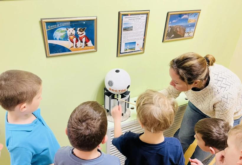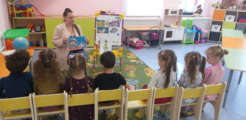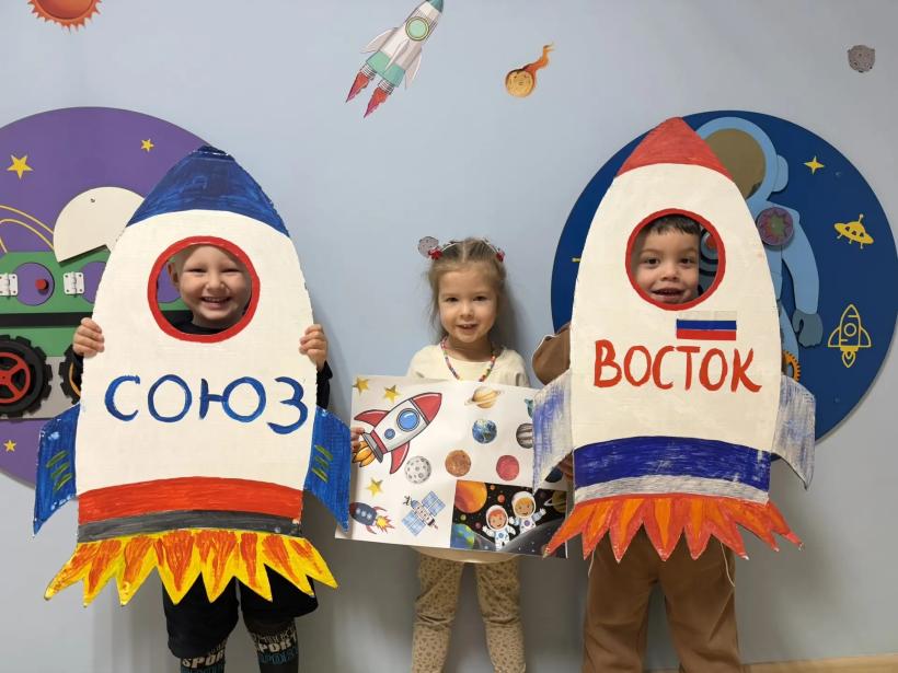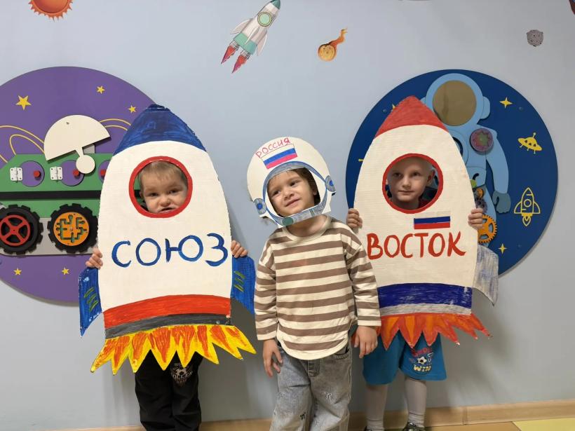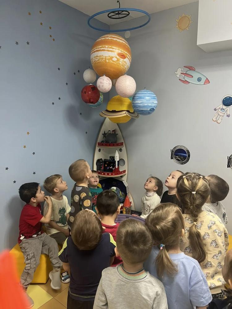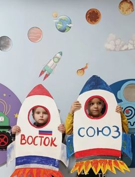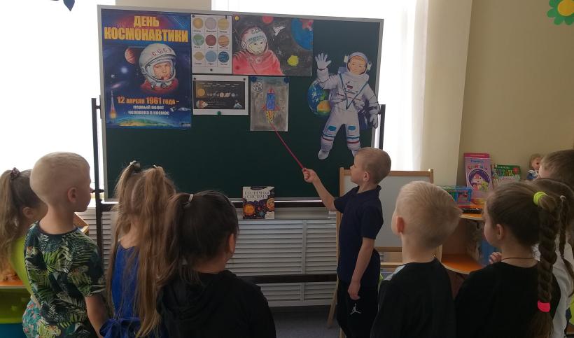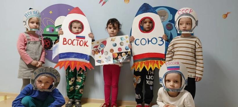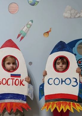 12 апреля празднуется Всемирный день космонавтики. Именно с этой датой связан первый полет человека в космос, этот день, по сути, стал началом новой эры человеческой свободы, когда он смог преодолеть ограниченное земное пространство, и устремился ввысь к неведомым далям космоса. В течение недели с детьми была проведена большая работа, которая была направлена к дате 12 апреля. Воспитатели проводили с детьми беседы о Ю. А. Гагарине, о космосе, о планетах солнечной системы, звёздах и созвездиях, с ребятами читали стихи, рассказы о космосе, космонавтах, рассматривали альбомы и иллюстрации, рисовали Космос и др. Дошкольники посетили развивающий центр «Космос», который находится в холле детского сада, рассмотрели макет солнечной системы, заглянули в иллюминаторы и увидели Землю из космоса, поиграли с космическими бизибордами, рассмотрели созвездие Большой и Малой Медведицы. Дети показали достаточные знания о планетах и созвездиях, их особенностях. Дошкольное детство – важнейший период становления личности, и такие мероприятия способствуют развитию патриотических чувств.
