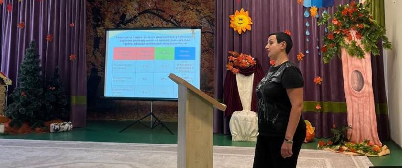 В детском саду прошёл педсовет «Повышение качества педагогической работы по физическому развитию детей и укреплению их здоровья». Воспитатель Мамадиева С.М. представила сообщение по теме «Воздействие физических упражнений на физическое и психическое самочувствие дошкольников». Инструктор физкультуры Бреславская Т.В. представила результаты педагогической диагностики физического развития дошкольников на начало учебного года. Старший воспитатель Алексеева Г.Е. провела с педагогами деловую игру «Педагогический пробег» на определения уровня знаний методики физвоспитания.
