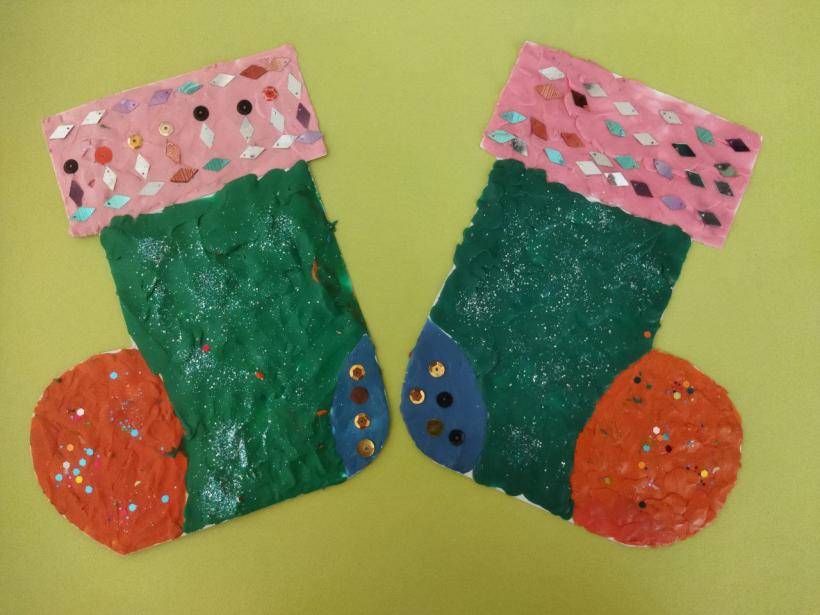 В преддверии ожидания новогоднего праздника ребята из старшей группы «Ягодки» решили порадовать Деда Мороза своими подарками. Дети решили изготовить и подарить Деду Морозу на праздник сказочные сапожки. Надо было видеть, с какой любовью они были изготовлены и украшены! Тут и бусины и блестки и другие украшения. Очень красиво! Любуйтесь!