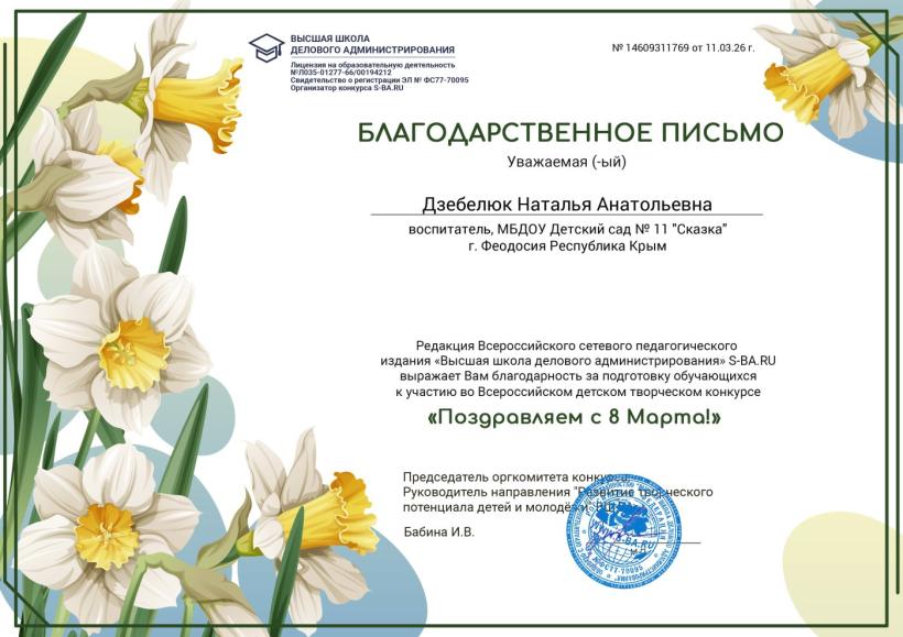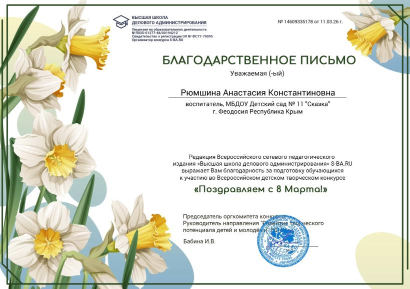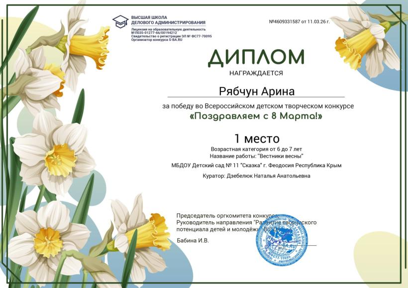 Поздравляем победителей Всероссийского детского творческого конкурса "Поздравляем с 8 Марта!"