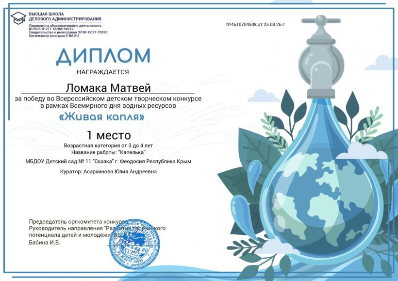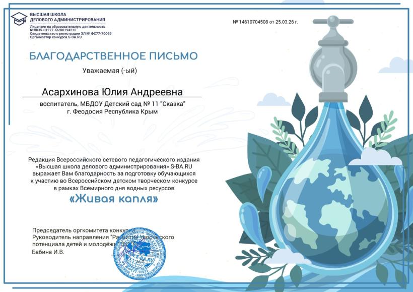 Поздравляем победителей Всероссийского детского творческого конкурса в рамках "Всемирного дня водных ресурсов "Живая капля"