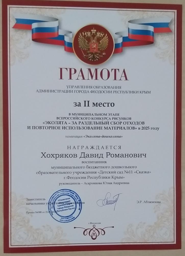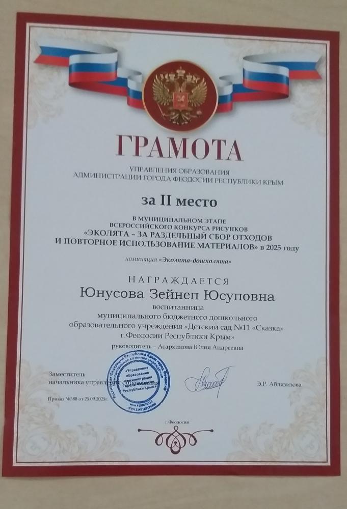 Поздравляем призёров Муниципального этапа Всероссийского конкурса рисунков "Эколята - за раздельный сбор отходов и повторное использование материалов" в 2025 году