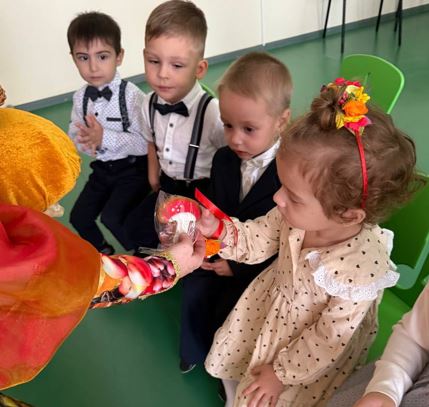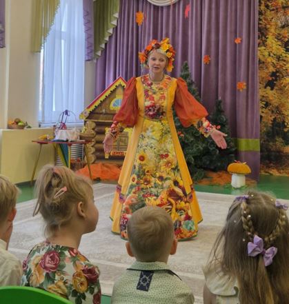 Праздники в детском саду - это радость, веселье, торжество, которые разделяют взрослые и дети. Они входят в жизнь ребенка ярким событием и остаются в памяти надолго. В осеннем празднике приняли активное участие дети от младшей до подготовительной группы. Дети водили хоровод, пели песни об осени, играли в веселые игры, читали стихи. В гости к ребятам пришла красавица Осень, малыши участвовали в кукольном спектакле «Чудо грибок», дошкольники встретились с Лисичкой, Мокриной и Холодиной и показали как можно веселиться и не грустить осенью, даже когда идёт дождь. А самым ярким и запоминающимся эпизодом стал сюрпризный момент - угощение от Осени. Праздники подарили детям много положительных эмоций.