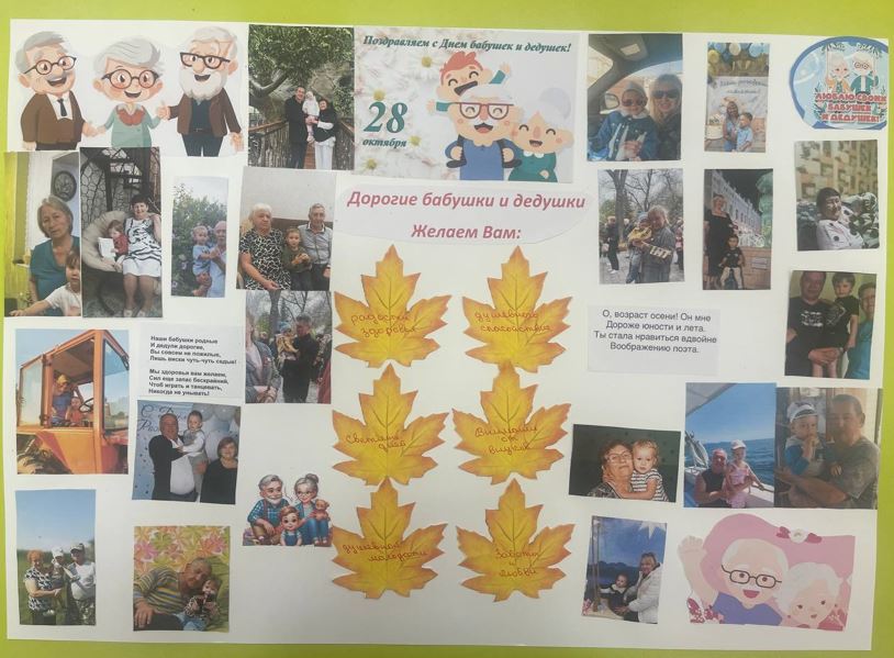 Несмотря на наличие Международного дня пожилых людей, в мире существует еще и такой праздник, как День бабушек и дедушек. В России он отмечается 28 октября. Международный день бабушек и дедушек Торжество, призванное напомнить бабушкам и дедушкам о той важной роли, которую они играют в жизни подрастающего поколения. Во всех группах были проведены познавательные беседы, сюжетно-ролевые игры на тему «Семья», чтение художественной литературы. Ребята из группы «Одуванчик» оформили праздничную стенгазету, подготовили поздравления с фотографиями любимых бабушек и дедушек. От всей души поздравляем всех бабушек и дедушек наших воспитанников с праздником. Живите долго и будьте счастливы!