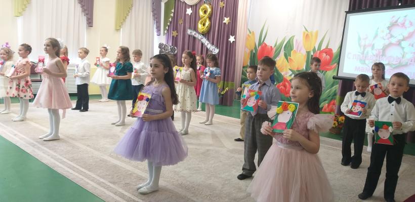 С 3 по 6 марта 2026 года в нашем детском саду прошли мероприятия, посвященные Международному женскому дню. И дети, и взрослые долго готовились к этому празднику: мастерили подарки мамам и бабушкам, разучивали стихи, пели песни. И вот этот день настал. К нам в детский сад пришли гости: мамы, бабушки, сестренки. На празднике дети читали стихи о весне, пели песни о маме, бабушке, исполняли танцы, играли на музыкальных инструментах. Ребята младшей и средних групп пригласили мам в магазин и подарили музыкальные игрушки, вместе с родителями подготовили сценку «Как зверята мам искали», а старшие дошкольники подарили билет на детское телевиденье «Тепло сердец для милых мам!», где показали мамам отрывки из популярных программ «Танцы со звёздами», «Голос», «пока все дома», «Едим дома», «Новости детского сада» с участием наших детей. Праздник, несомненно, привнес в жизнь детского сада атмосферу весенней радости и счастья. Мы еще раз от всей души поздравляем всех милых женщин с праздником!