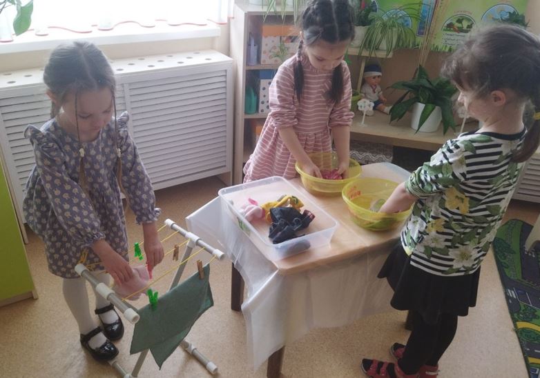 Трудовое воспитание – это подготовка ребёнка к жизни, к участию в общественно-полезном труде, формирование активной, целеустремлённой личности. Хозяйственно-бытовой труд играет важную роль в воспитании детей старшей группы. Он помогает им развивать самостоятельность, ответственность и навыки самообслуживания. Сегодня дети старших групп «Ягодки» и «Божьи коровки» наводили порядок в группе: мыли игрушки, наводили порядок в уголке природы и шкафах с игрушками, стирали кукольное бельё и др. Дети проявили большой интерес к труду, за любое порученное дело брались с охотой, работали сообща и довели начатое дело до конца.