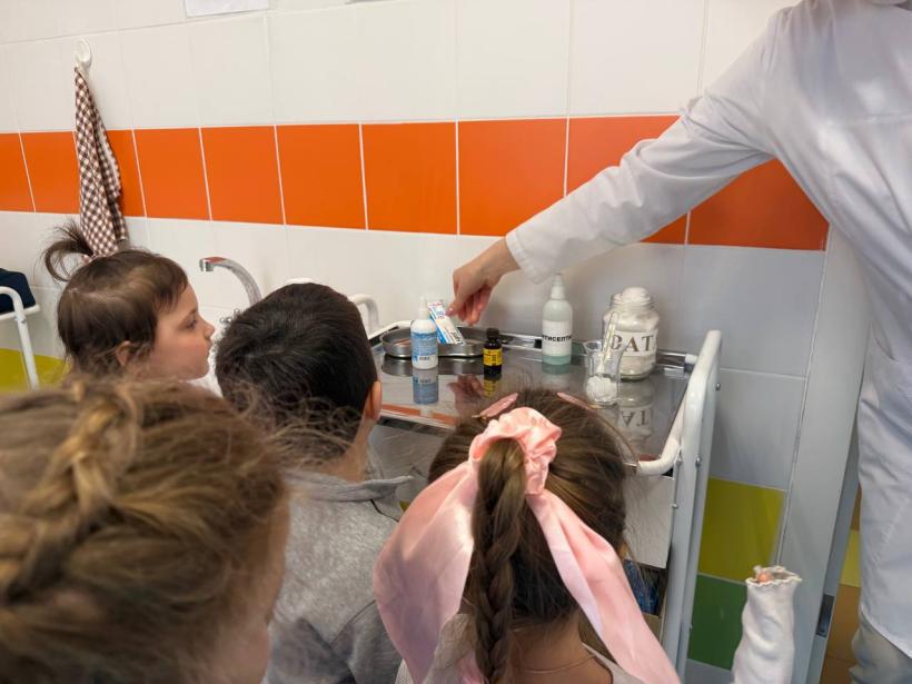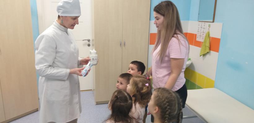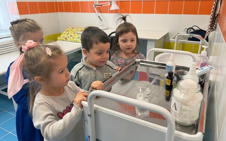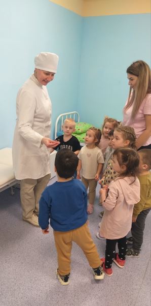 Воспитатель младшей группы «Одуванчик» Юлия Андреевна знакомила детей с профессией медицинской сестры. Дети посетили медицинский кабинет где их приветствовала медицинская сестра Людмила Ильинична, которая рассказала о важности её профессии и познакомила с некоторыми атрибутами медицинского кабинета : весами, фонендоскопом, ростомером, градусником, шпателем для горла. Послушала ребяток, посмотрела горлышко, измерила рост и вес дошкольников. У ребят только формируется представление о профессиях взрослых и данная экскурсия помогла познакомить малышей с содержанием труда медицинской сестры, воспитать уважение к труду медицинских работников.